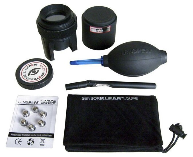 Kit contents: Sensor Klear SK-II-A Sensor Cleaning Pen, Sensor Klear Loupe SKL-1 Illuminated Magnifier and Blower HB-1 Universal Bulb