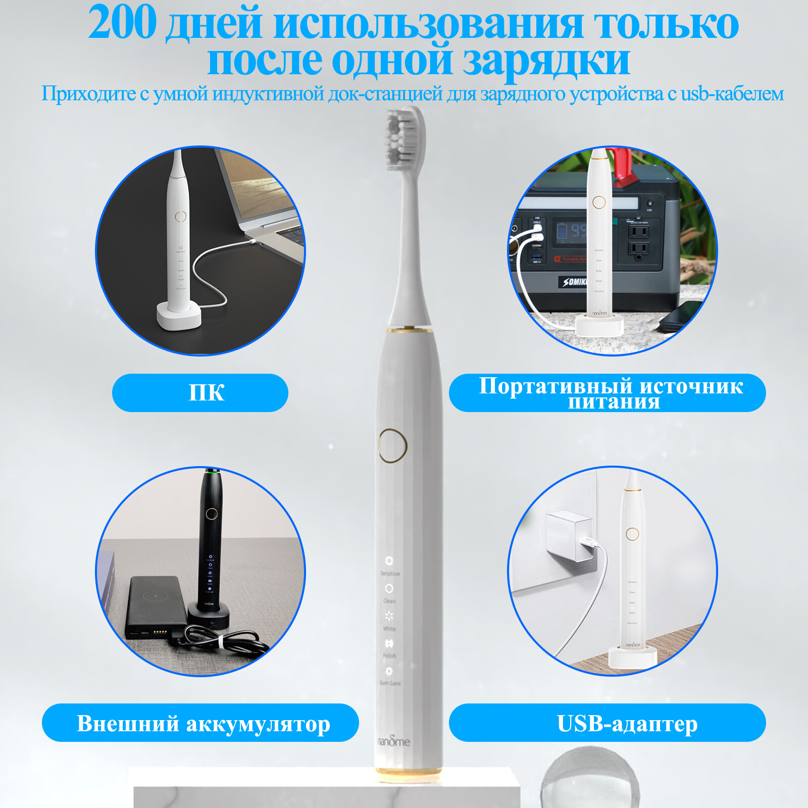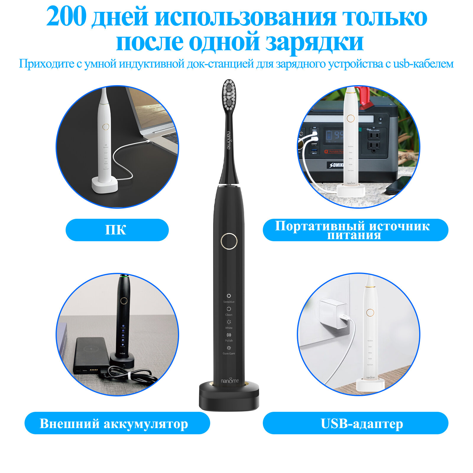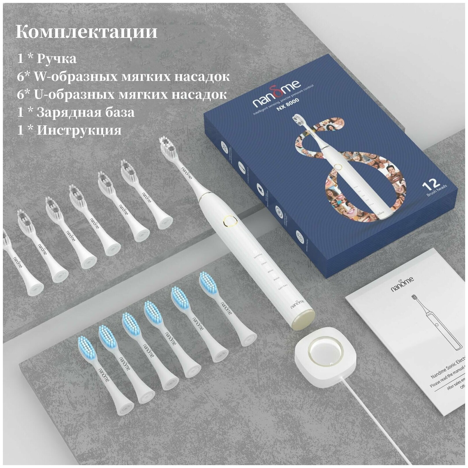Toothbrush, 6 pcs of soft and 6 pcs of hard nozzles, charging