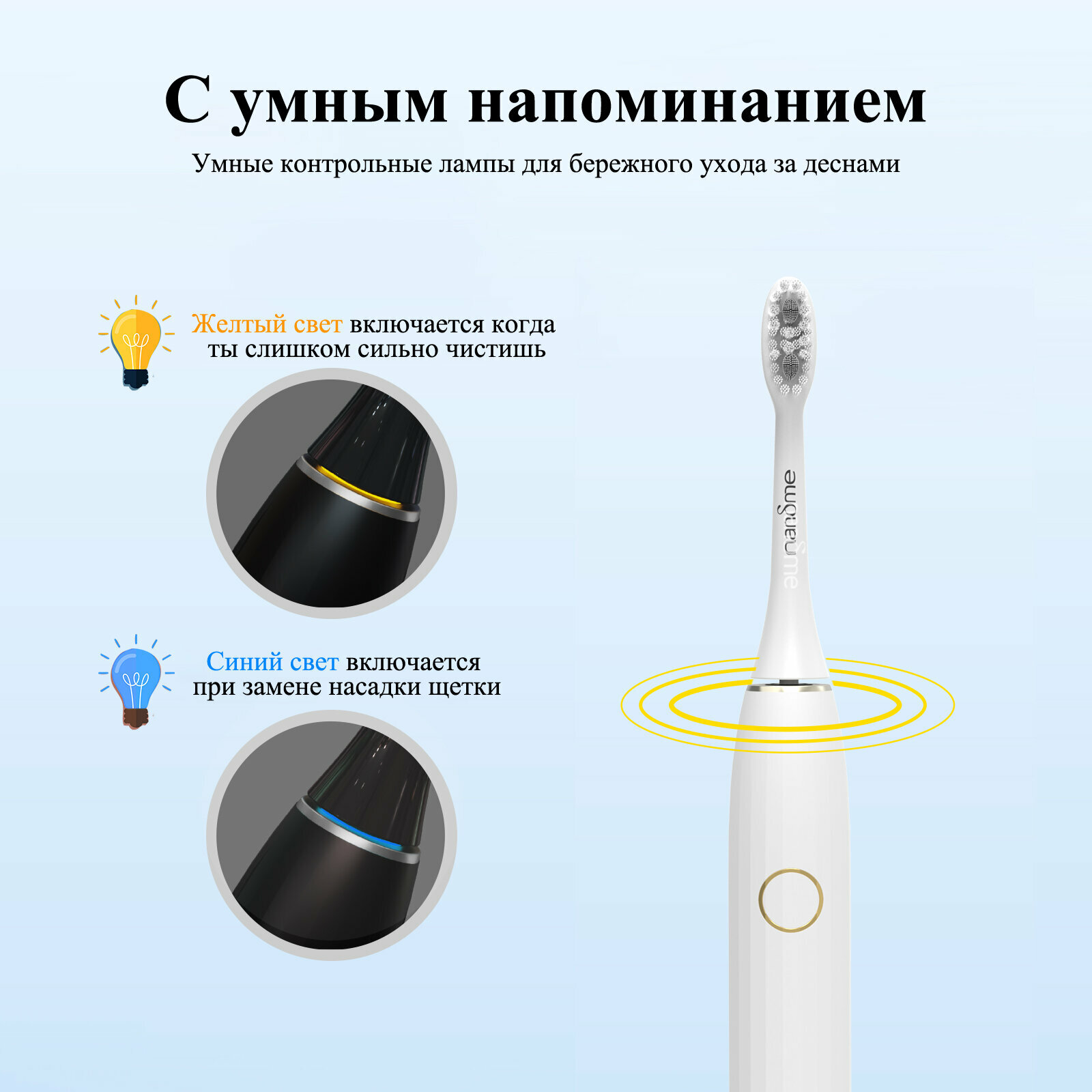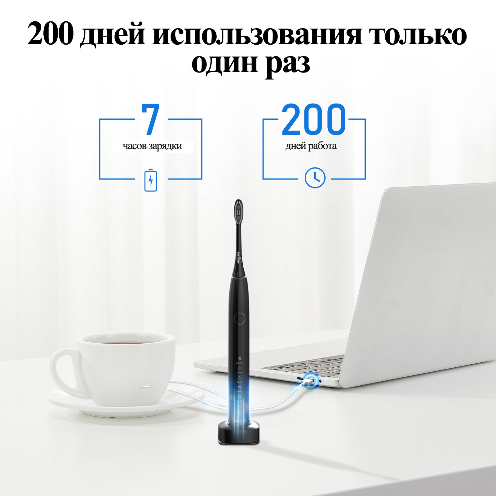 DuPont bristles; moisture protection IPX7; high-capacity battery 2900 mAh up to 200 days on a single charge; indicator light
