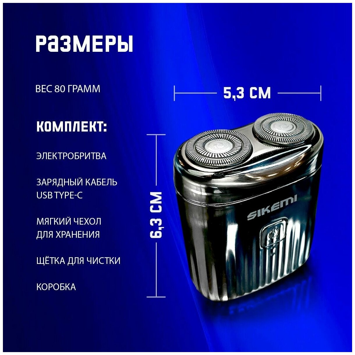 Razor type: rotary, shaving method: dry, power supply: autonomous, features: non-slip insert on the handle, trimmer, number of shaving elements: 3, battery type: NiMH, set includes: protective cover, cleansing brush
