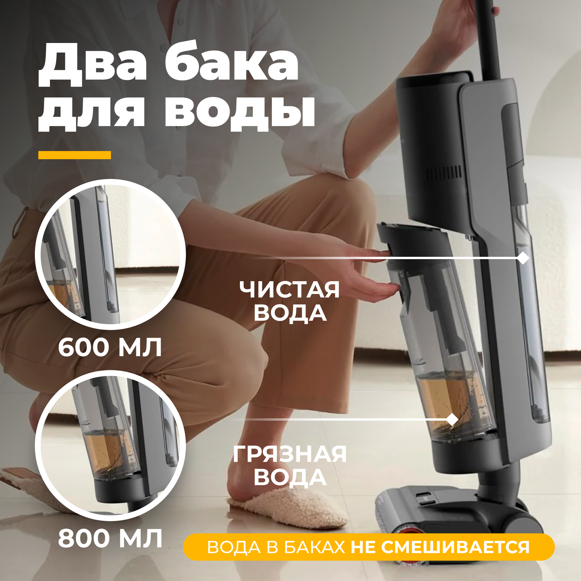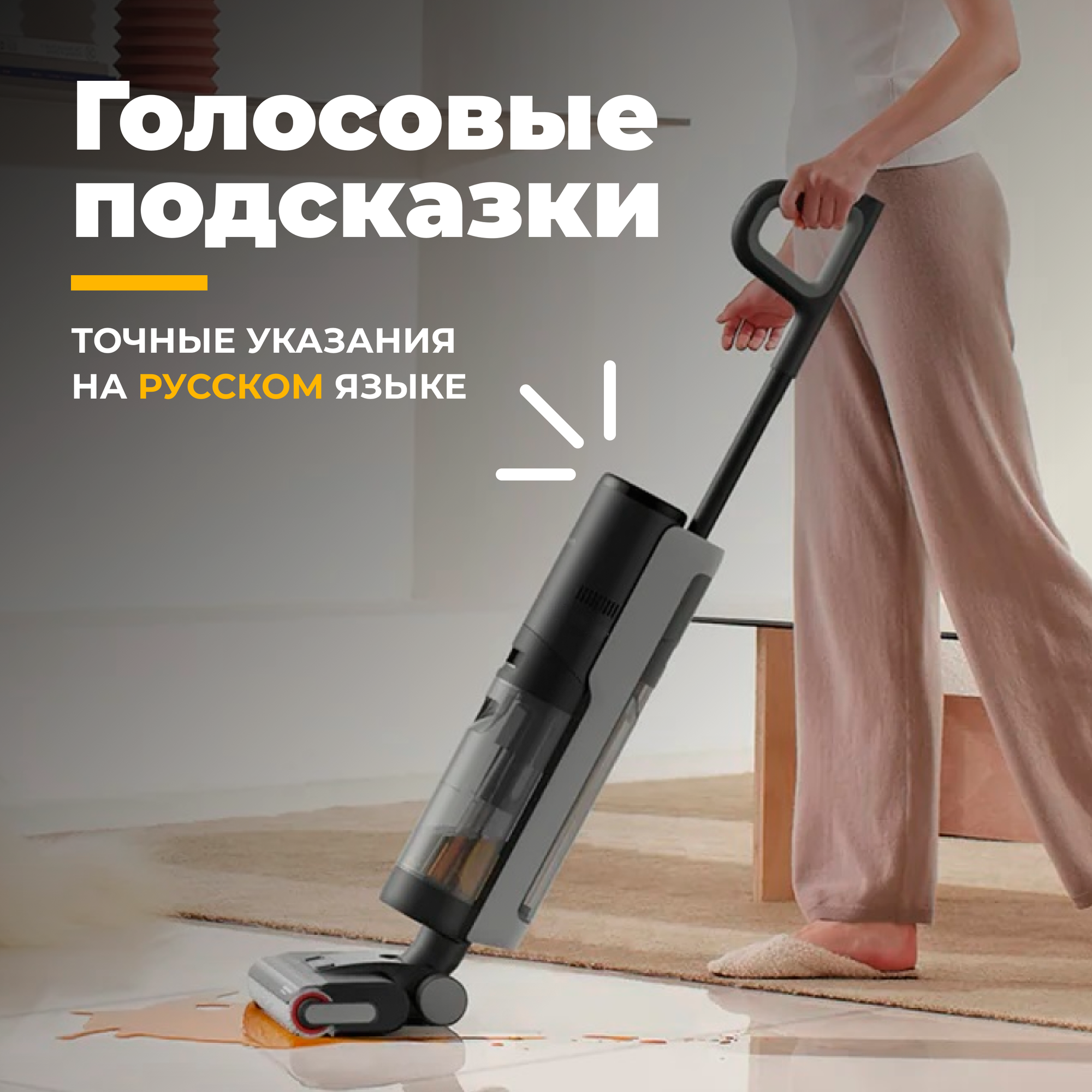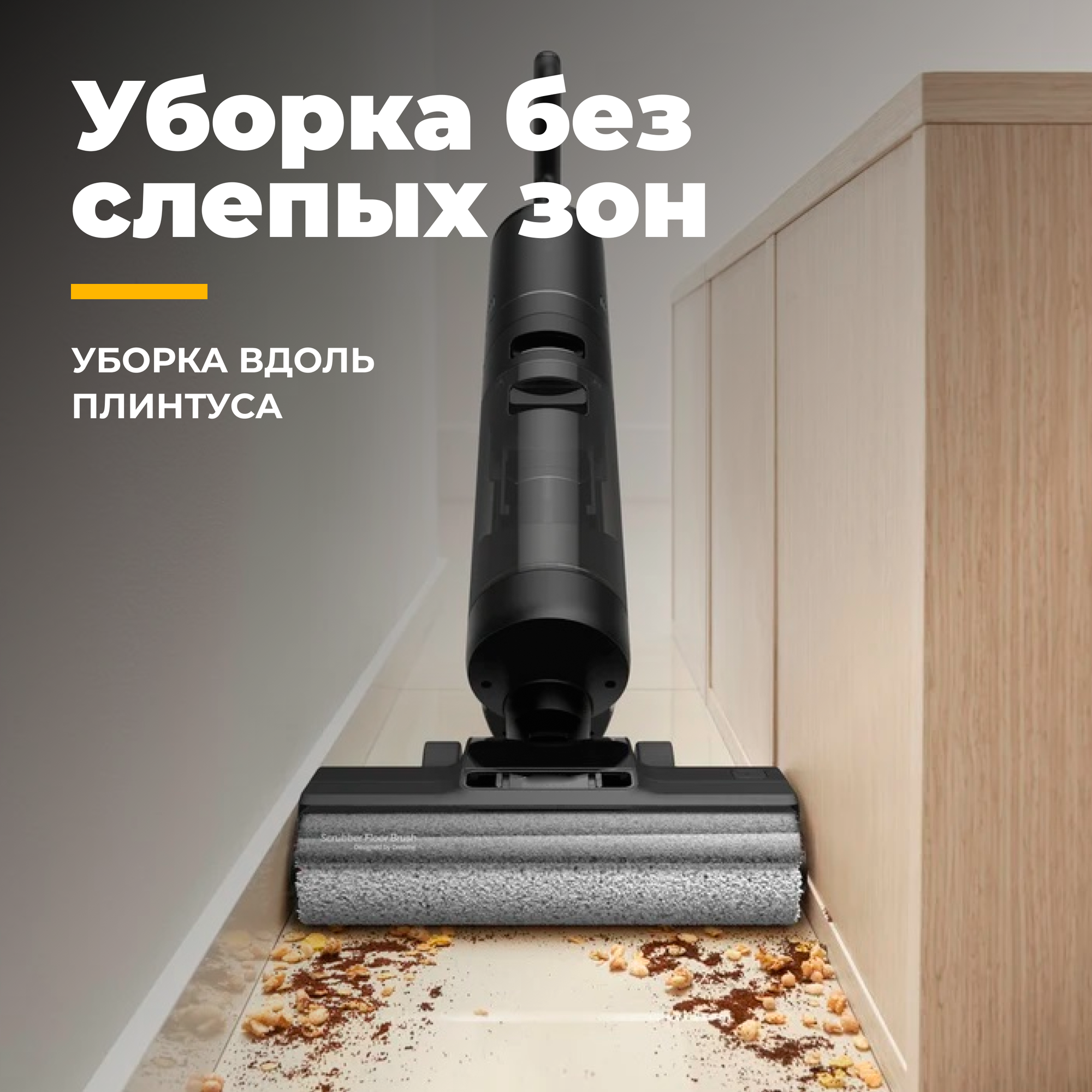 Liquid collection function, LED display, Wireless operation, Voice prompts in Russian, Two operating modes, Self-cleaning roller, Dry and wet cleaning, Smart control, self-cleaning
