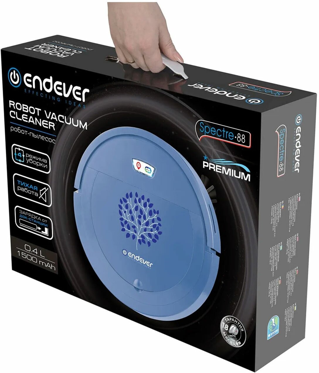 Line: ENDEVER Specter, cleaning type: wet, dry, dust container volume: 0.40 l, battery life: 120 min, sensor type: Obstacle sensors, installation on charger: automatic, fine filter