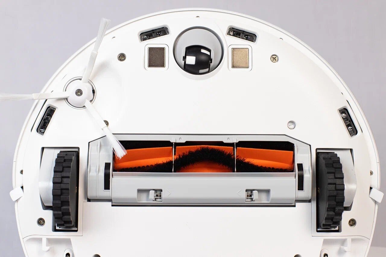 Gyroscope, height difference sensor, dust bin full indicator, dustbin in the base, soft bumper, large wheels, soft bumper, gyroscope, height difference sensor