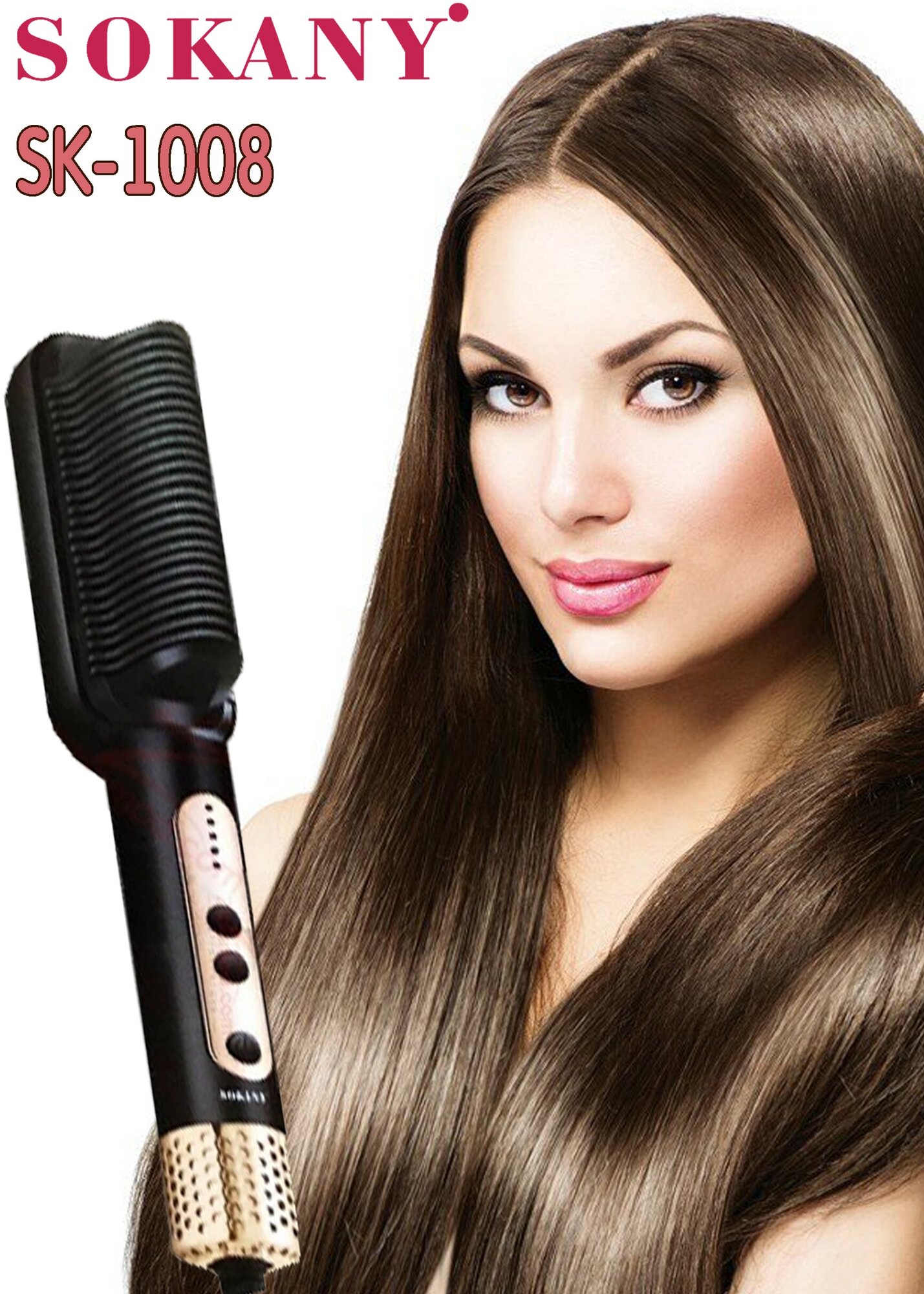 Electric Hair Straightening Brush/SK-1008/750W/Fast Heating/Overheat Protection/Ionization/Black