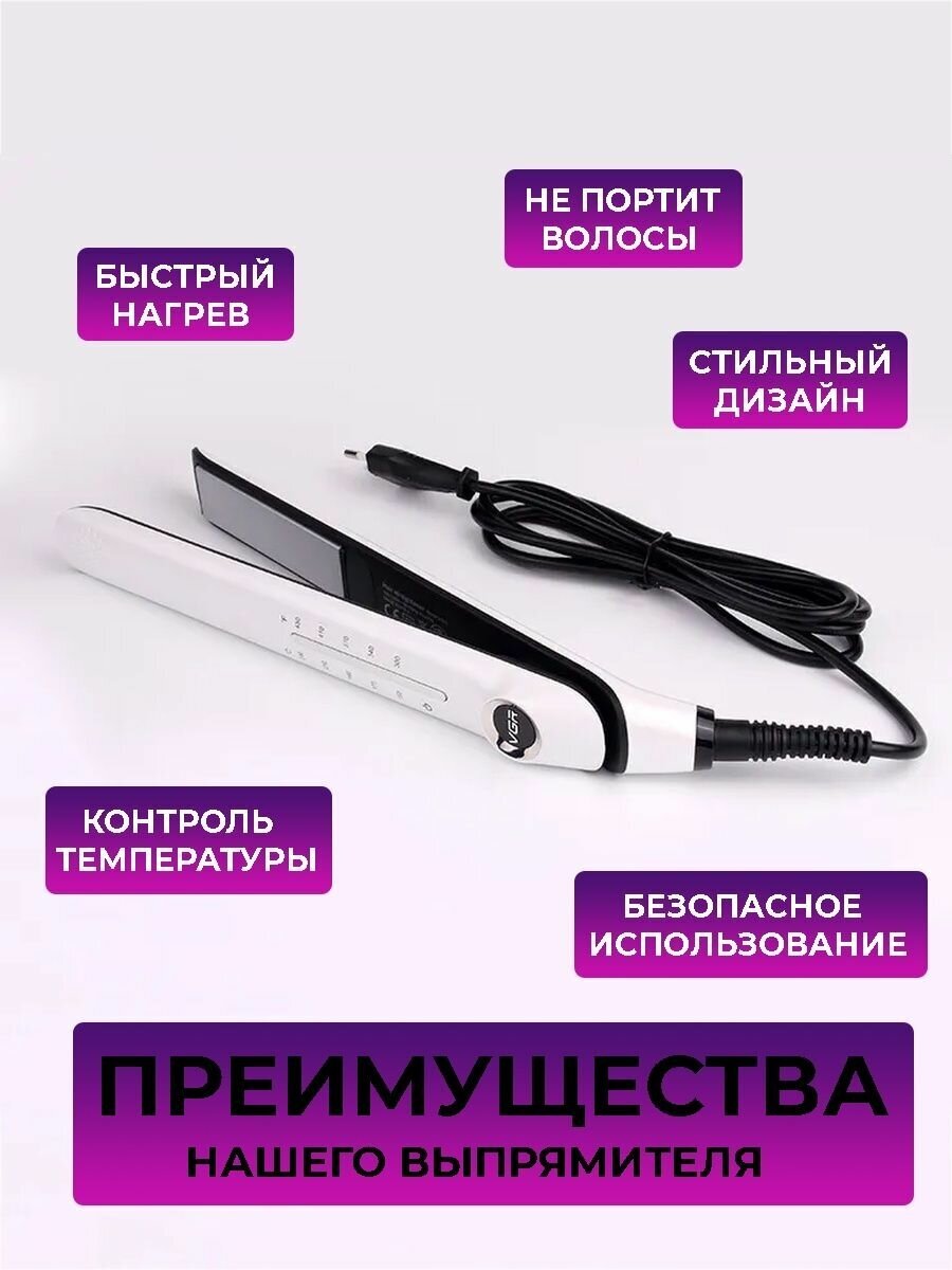 Type: straightener, coating: ceramic, purpose: straightening, additional functions: ionization, plate width: 30 mm, maximum heating temperature: 230 °C, number of heating modes: 5, features: floating plates