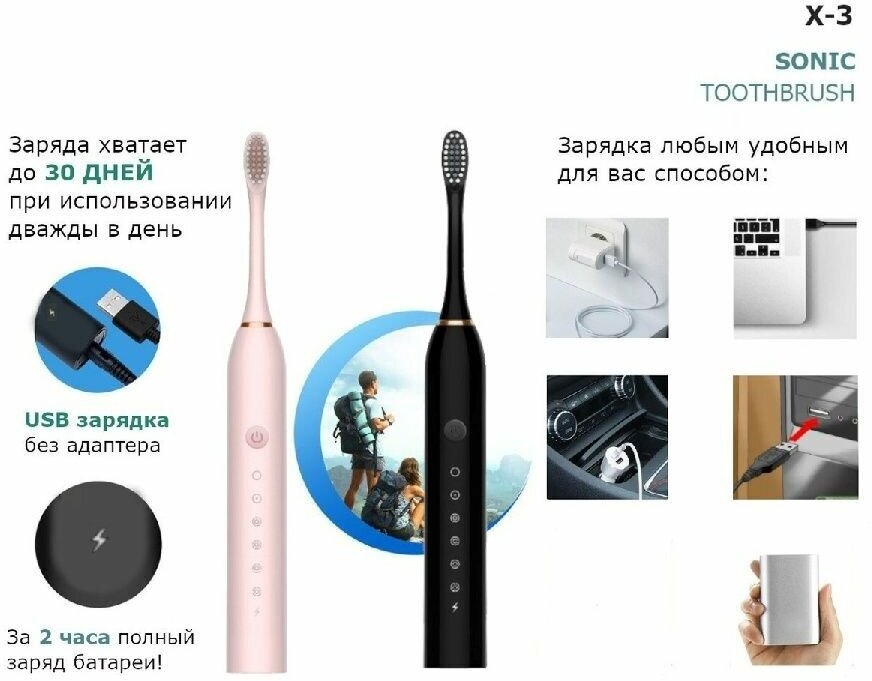 Purpose: for adults, brush type: sonic, power: USB