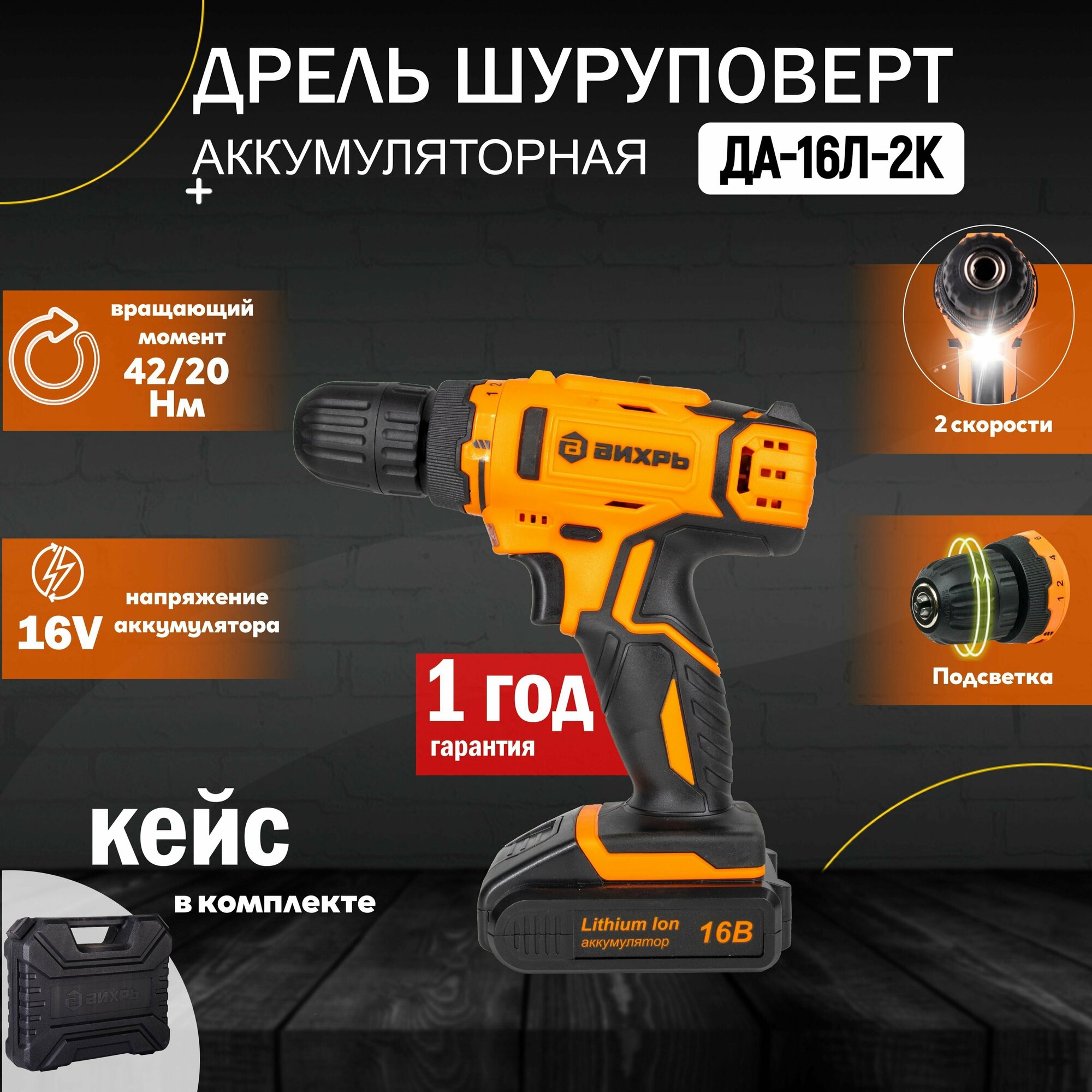 Power supply: battery, battery voltage: 16 V, battery capacity: 2 Ah, chuck type: quick-release, design features: rubber-coated handles, battery type: Li-Ion, type: screwdriver