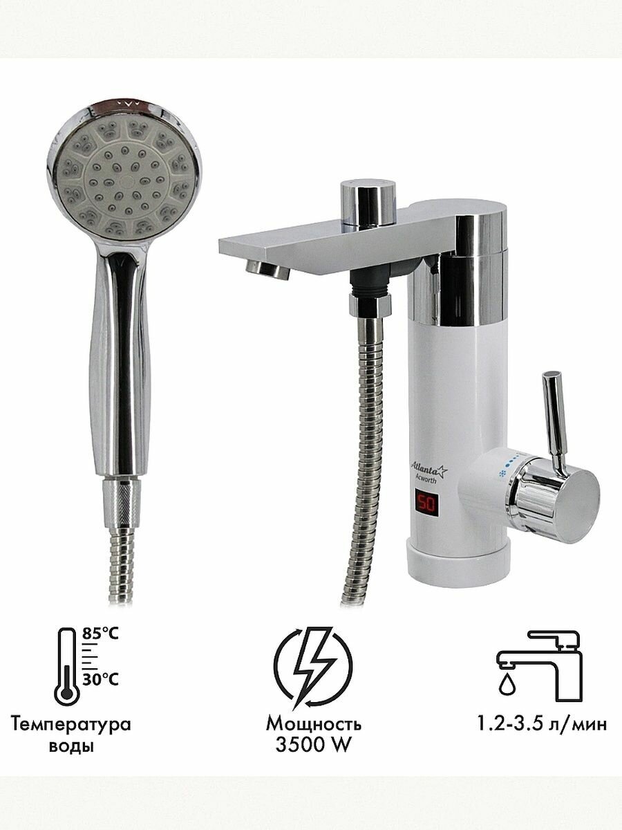 Water heater type: instantaneous, heating method: electric, power consumption: 3.50 kW, control: mechanical, features: shower head included
