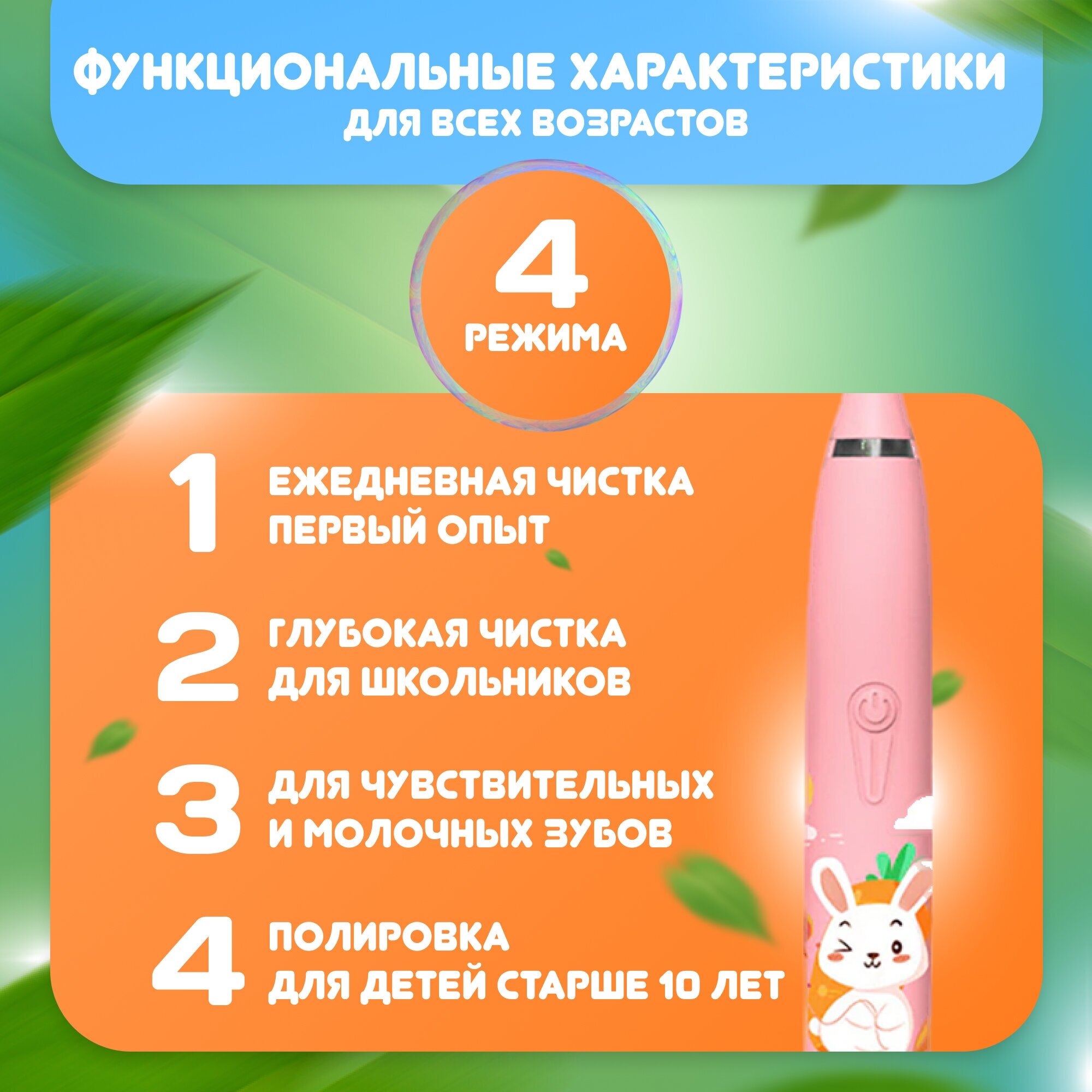 Purpose: for adults, type of brush: sonic, power supply: battery, operating modes: delicate cleaning, daily cleaning, whitening, nozzles: standard, number of nozzles in the set: 1, additional functions: �