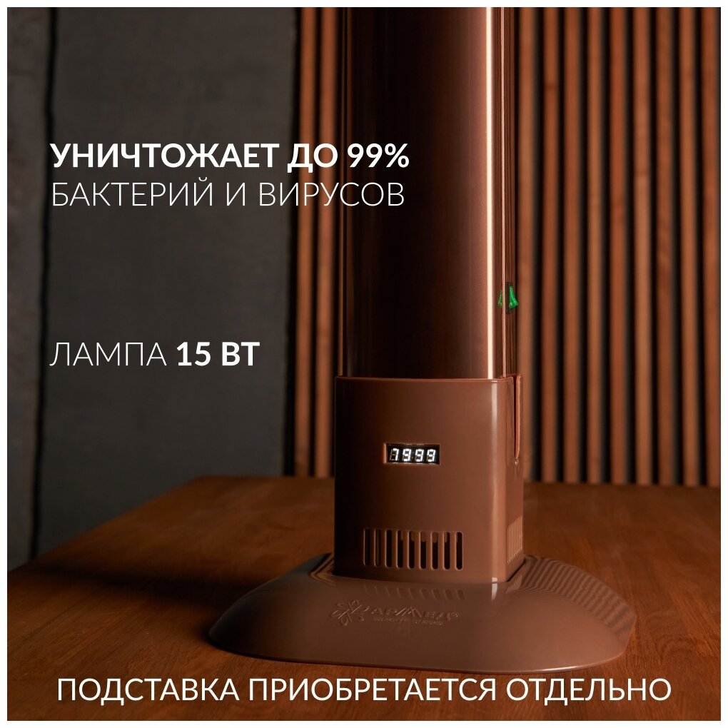 Irradiator type: closed; room categories: I, II, III, IV, V; recommended room volume: 30 m³; power consumption: 20 W; productivity: 30 m³/h; noise level: 40 dB; lamp base type: 2G11; number of lamps: 1x15 W in a computer