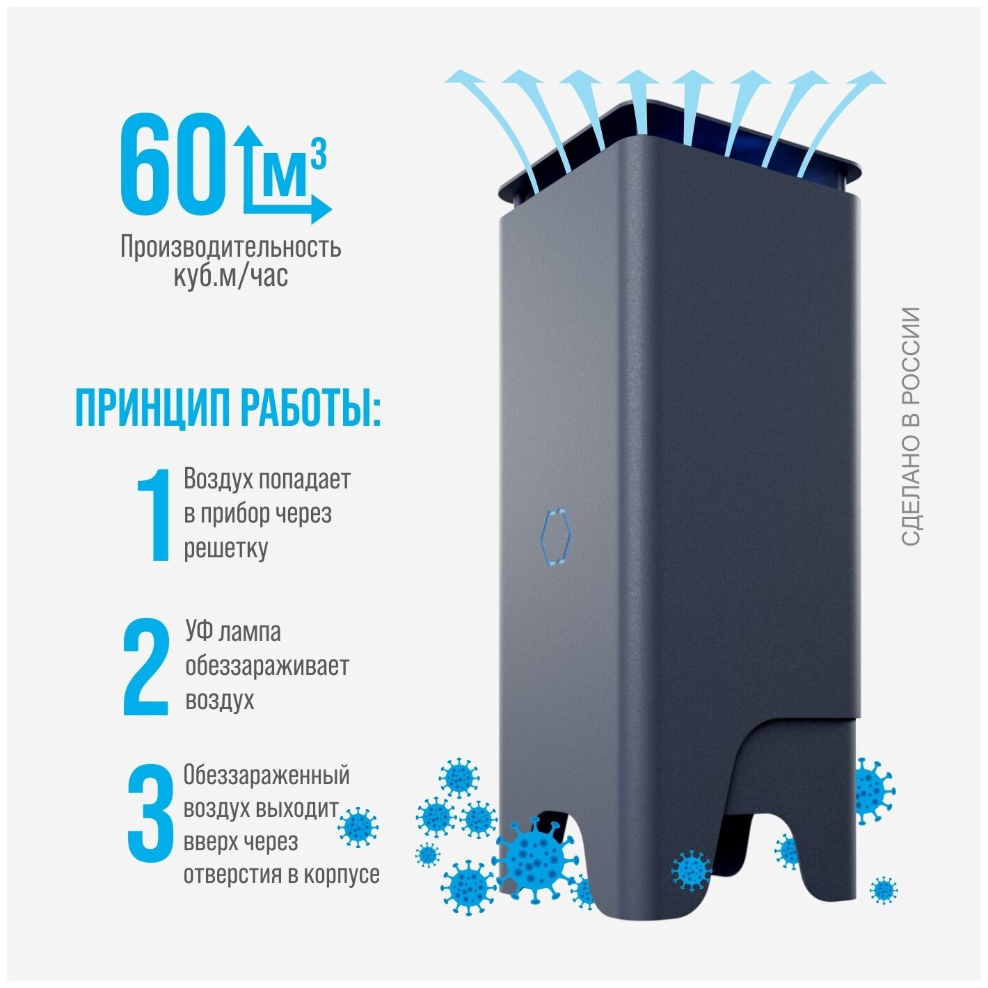 Type: recirculator, purpose: indoors, installation: on a stand, floor, desktop, case material: metal, length: 18 mm, width: 18 mm, height: 40 mm