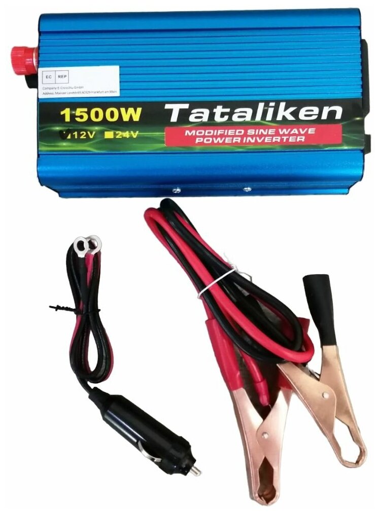 Inverter, wires for connection to the cigarette lighter with a plug, wires for connection to the battery with alligator clips