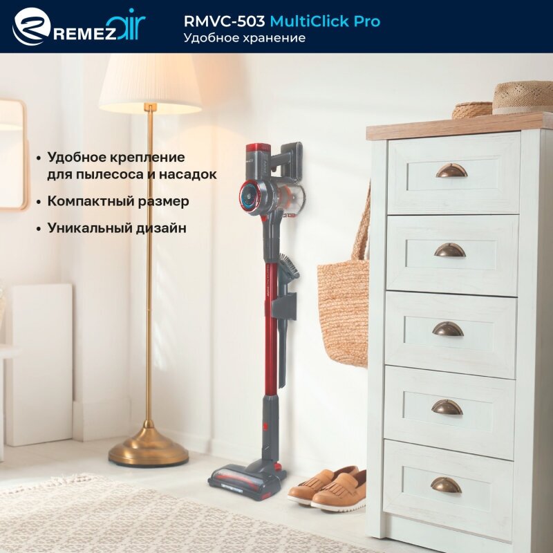 Three operating modes: Eco mode up to 50 minutes without recharging, basic mode up to 25 minutes, Turbo mode up to 15 minutes; suction power: 12,000, 17,000 and 24,000 Pa; tube material: metal; Body material: ABS plastic, aluminum; battery charging time
