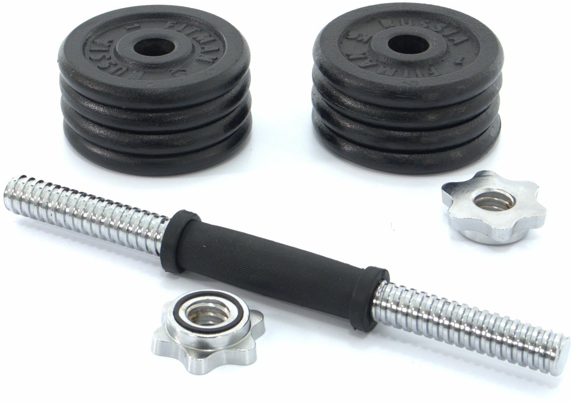 Type: dumbbell, design: collapsible, dumbbell shape: round, disc coating: cast iron, handle coating: rubber