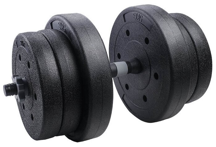 Dumbbell neck: 1 pc, neck screws: 2 pcs, discs: 2 x 5 kg, 4 x 2 kg