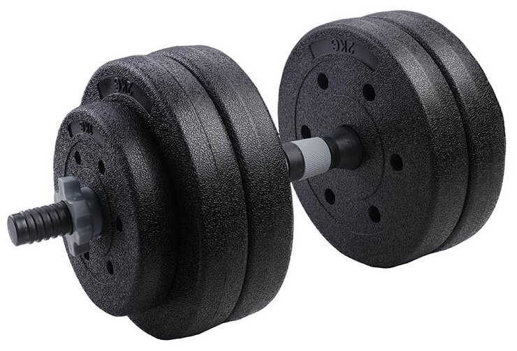 Dumbbell neck: 1 pc, neck screws: 2 pcs, discs: 4 x 2 kg, 2 x 1 kg