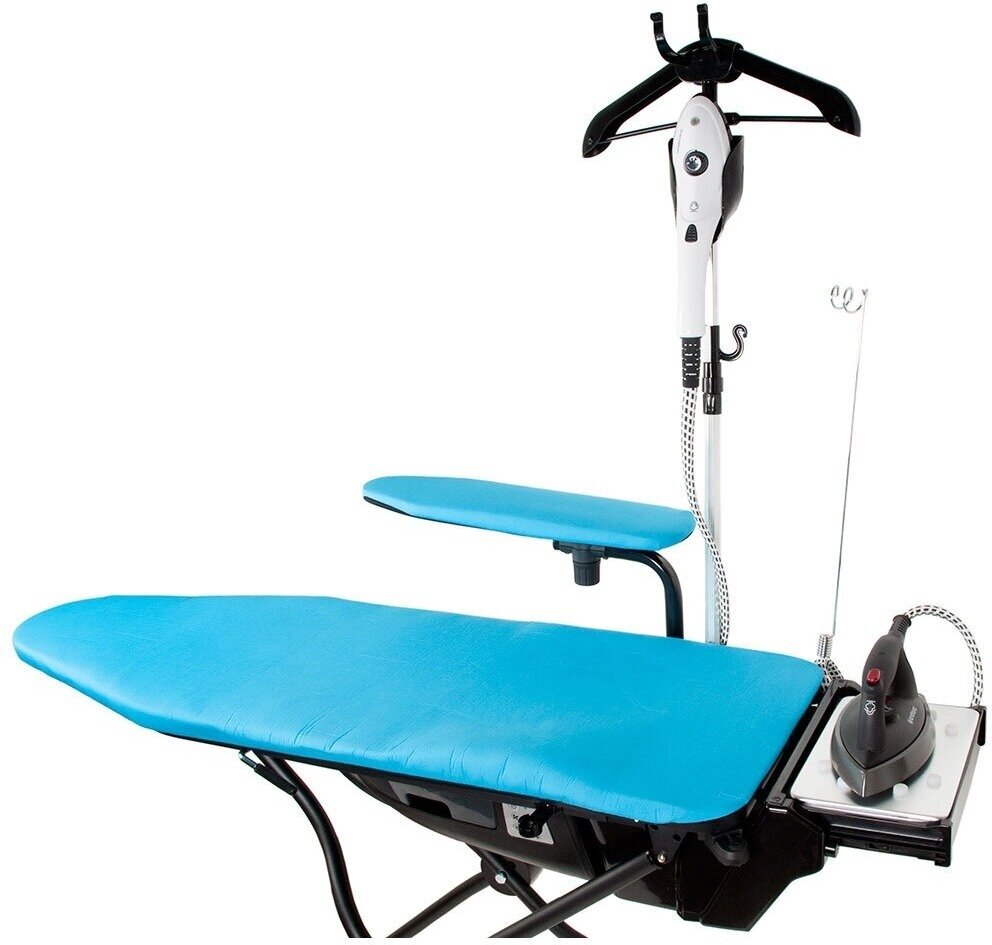 Automatic switch-off, built-in socket, iron storage compartment, folding system, ironing board cover
