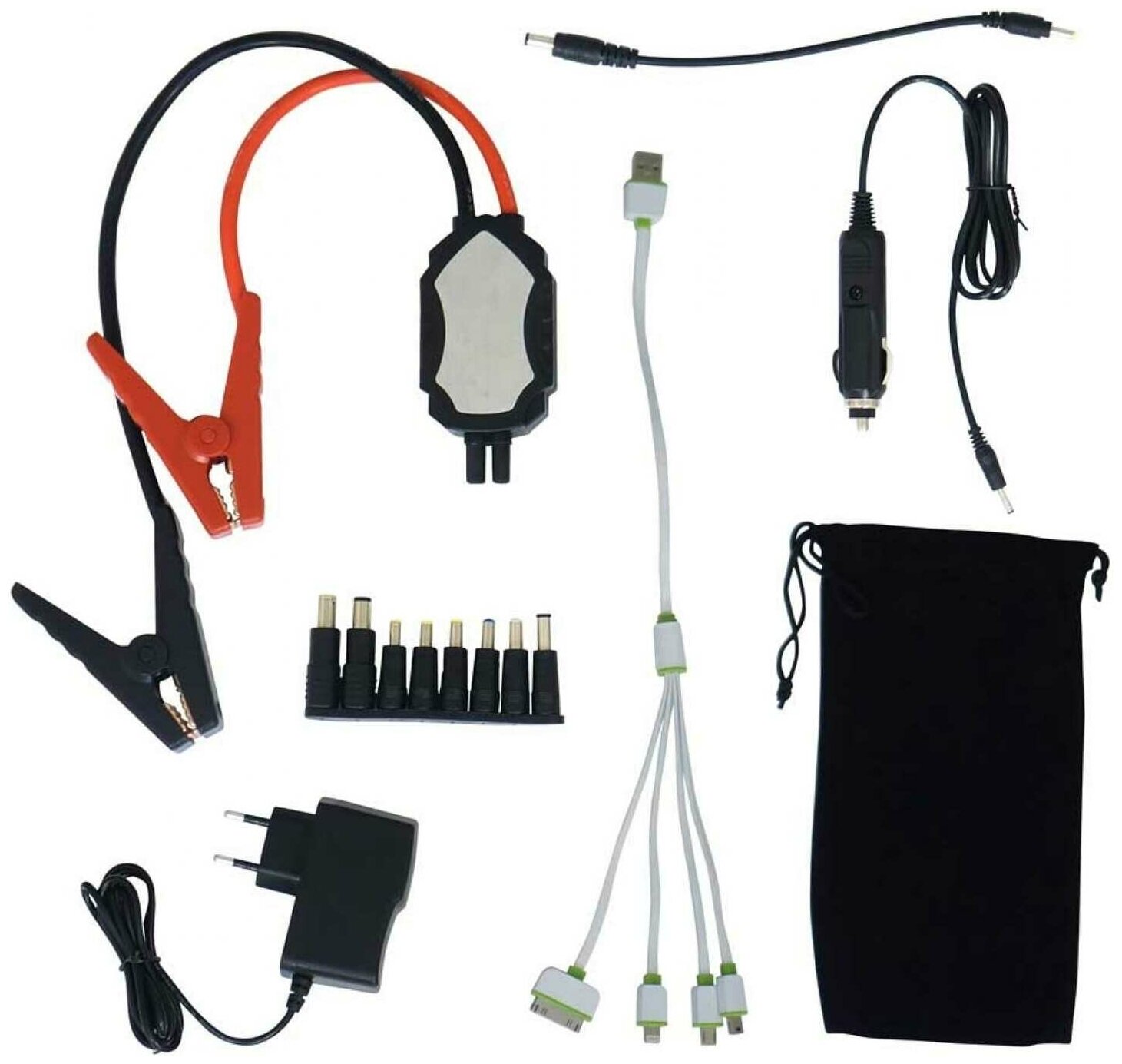 Built-in flashlight, Powerbank mobile device charging, cigarette lighter charging, mobile device charging