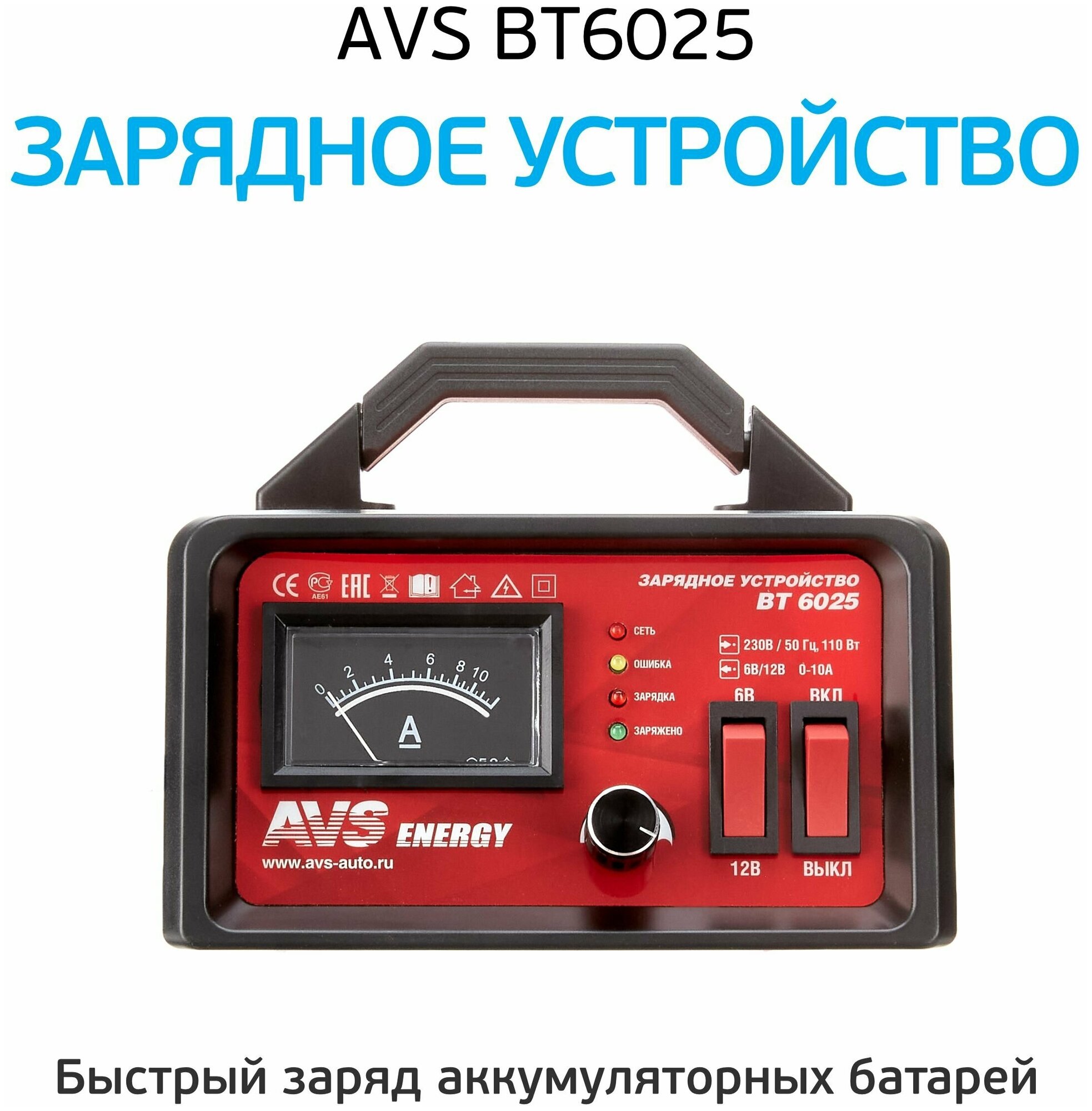 Charger for car battery AVS BT-6025 10A 6/12V - 1 pc., Charger, User manual and Warranty card.
