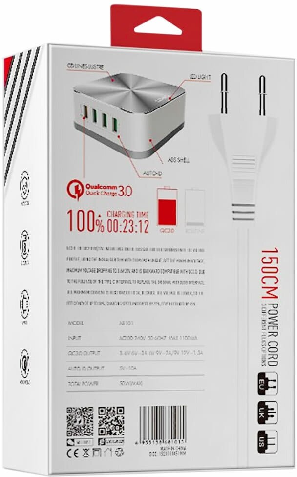 Number of sockets: 8, fast charging, fast charging standard: Qualcomm Quick Charge 3.0, maximum output current: 10A, maximum output power: 50W, features: fast charging, LED indicator