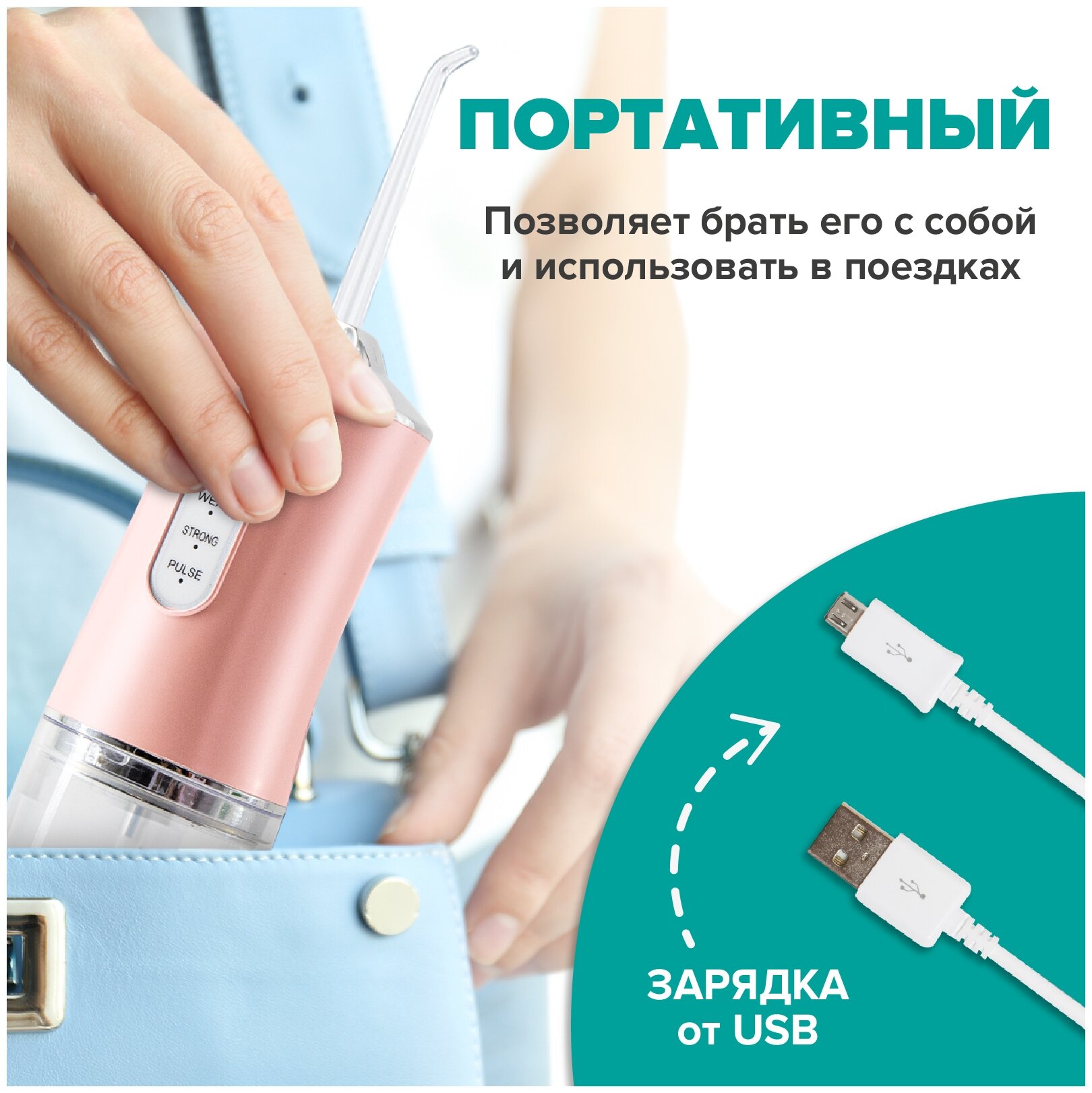 Power: battery, mains, type: irrigator, principle of operation: impulse, mono-jet, manual, nozzles: for tongue cleaning, orthodontic for braces, periodontal for gums, plaque remover, container