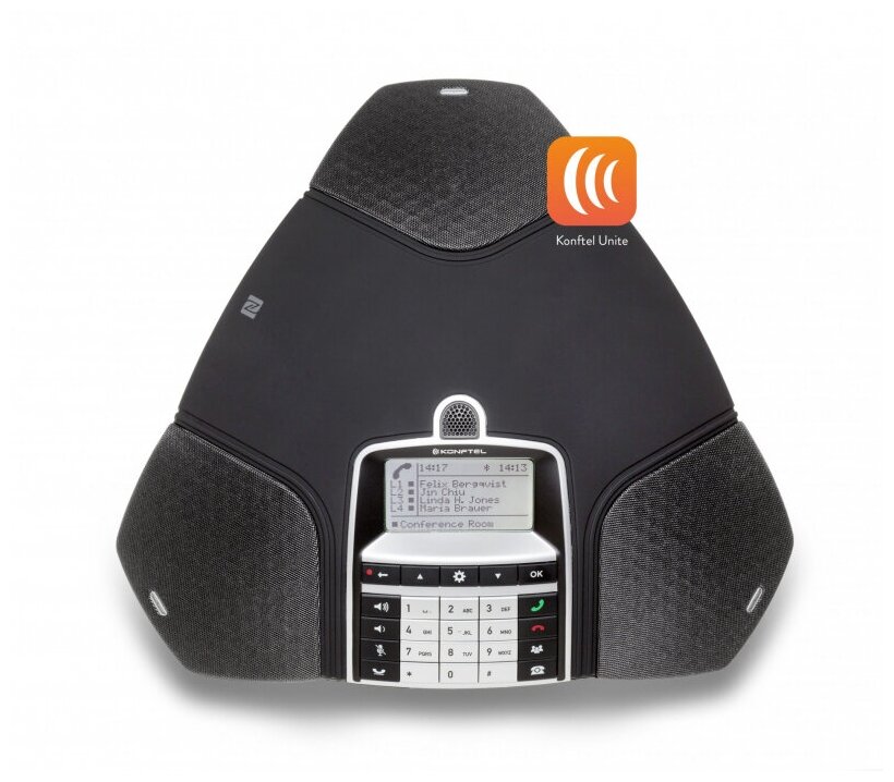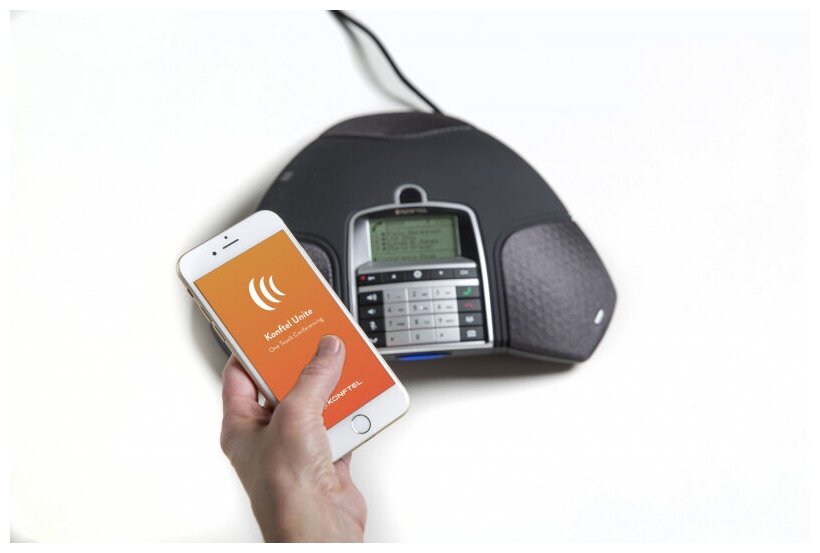 Speakerphone for conference calls; recording a conversation on an SD card; OmniSound® 2.0 audio technology with wideband voice transmission, omnidirectional microphone; reception area - up to 30 m2; support for the Konftel Unite application for working fr