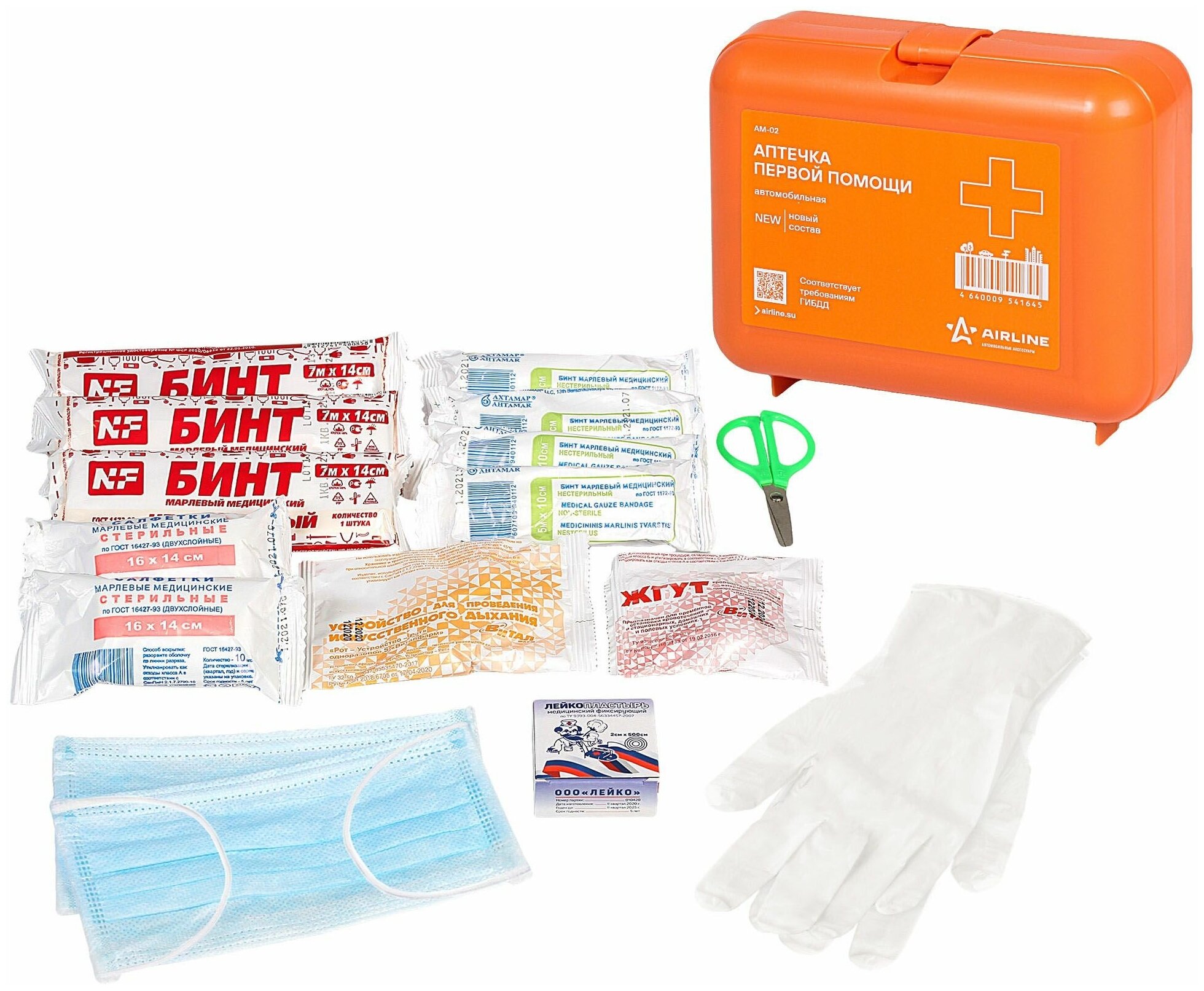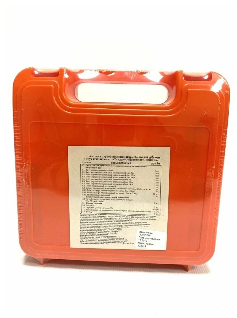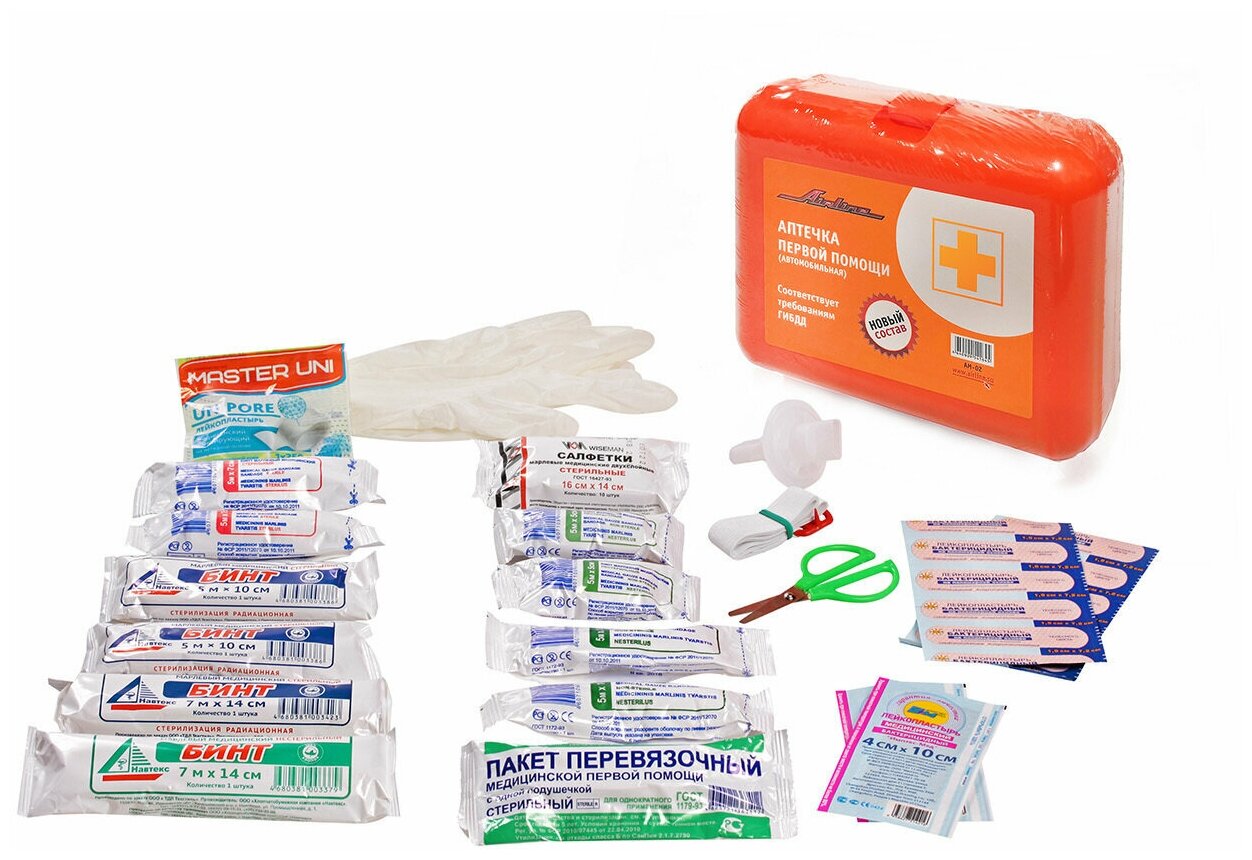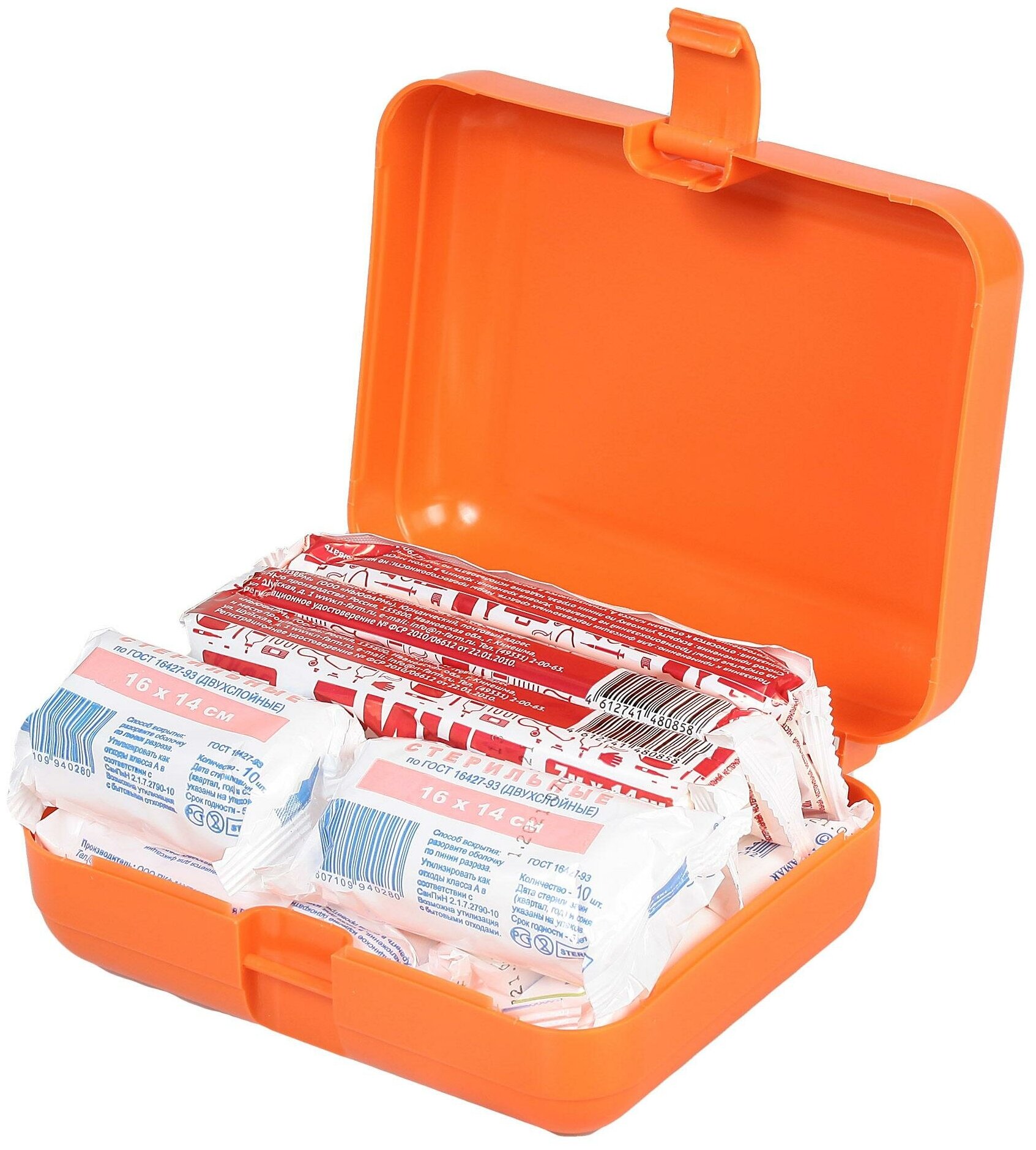 Hemostatic tourniquet 1 pc., non-sterile medical gauze bandage 5m x 5cm 2 pcs., non-sterile medical gauze bandage 5m x 10 cm 2 pcs., non-sterile medical gauze bandage 7m x 14 cm 1 pc., sterile medical gauze bandage 5m x 7cm 2 pcs. ., sterile medical gauze