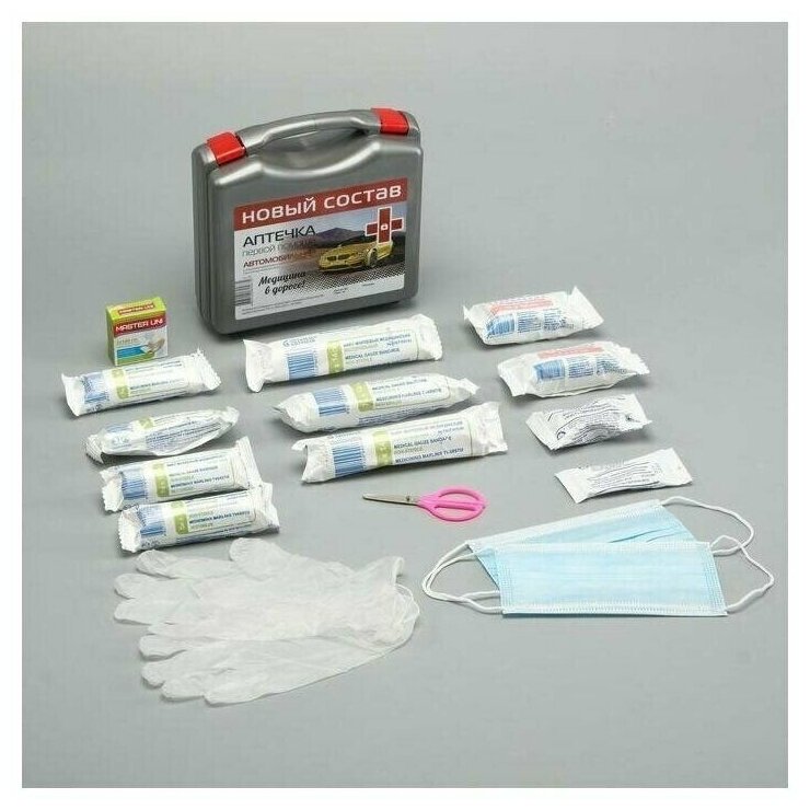 Compound: Hemostatic tourniquet 1 pc., non-sterile medical gauze bandage 5m x 5 cm 2 pcs., non-sterile medical gauze bandage 5m x 10 cm 2 pcs., non-sterile medical gauze bandage 7m x 14 cm 1 pc., sterile medical gauze bandage 5m x 7 cm 2 pcs., sterile medical gauze