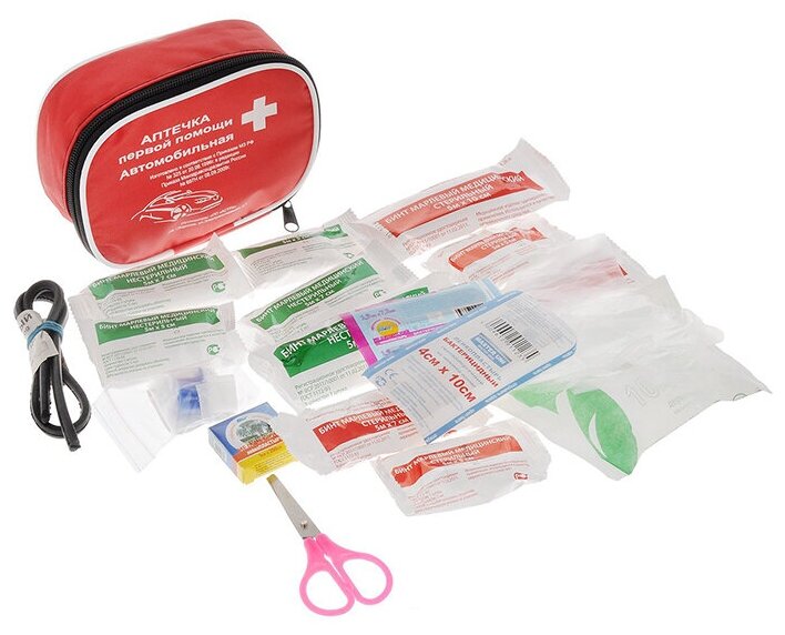 Hemostatic tourniquet 1 pc., non-sterile medical gauze bandage 5 m x 5 cm 2 pcs., non-sterile medical gauze bandage 5 m x 10 cm 2 pcs., non-sterile medical gauze bandage 7 m x 14 cm 1 pc., sterile medical gauze bandage 5 m x 7 cm 2 pcs., sterile medical g