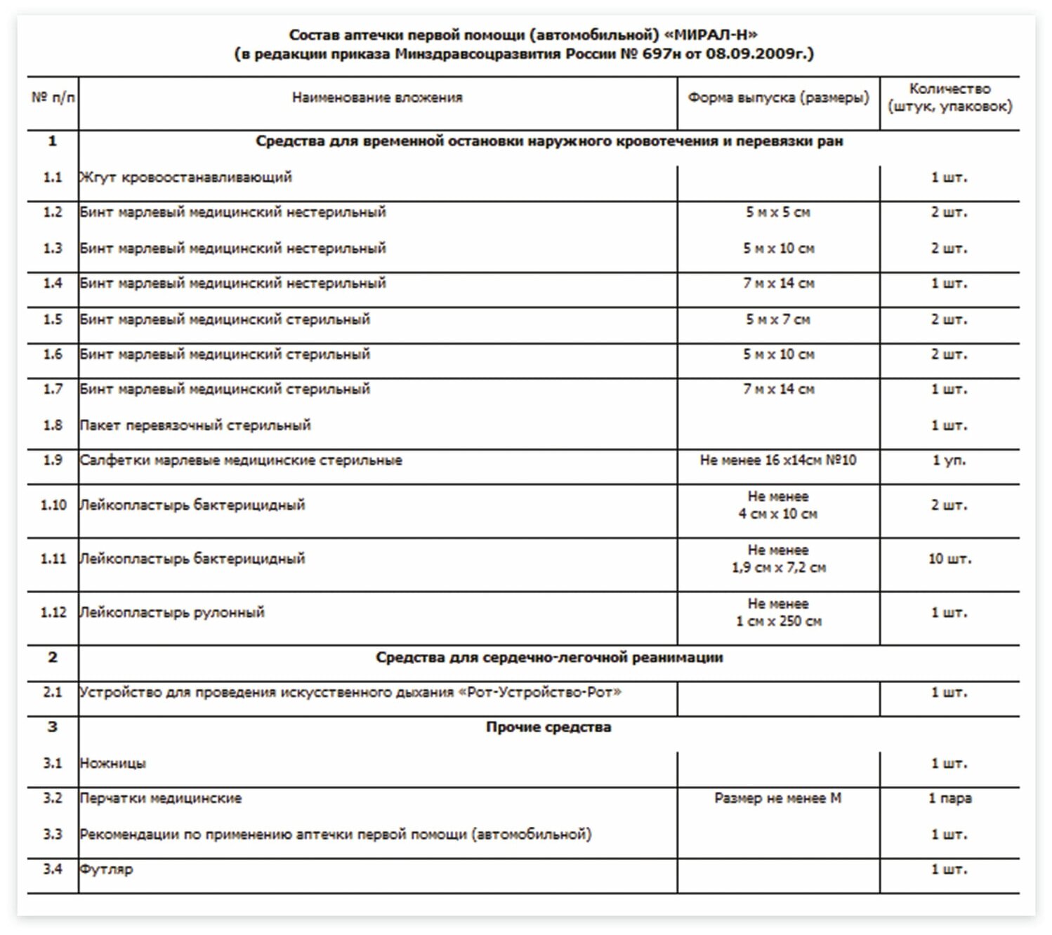 Hemostatic tourniquet - 1 pc., non-sterile medical gauze bandage 5 m x 5 cm - 2 pcs., non-sterile medical gauze bandage 5 m x 10 cm - 2 pcs., non-sterile medical gauze bandage 7 m x 14 cm - 1 pc., bandage sterile medical gauze 5 m x 7 cm - 2 pcs., sterile