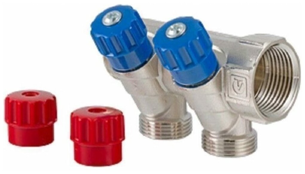 Manifold with control valves Euroconus 3/4, 1x2 outlets. VALTEC