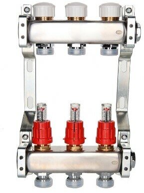 Manifold block 1, 3 outlets x 3/4 euro cone with control valves and VALTEC flow meters
