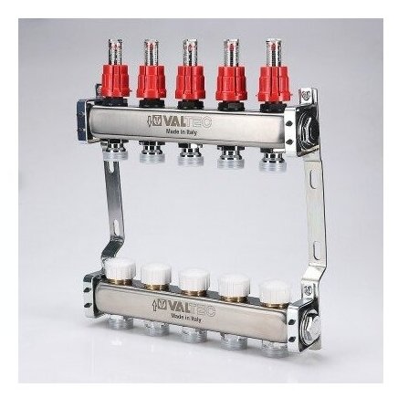 Manifold block 1, 5 outlets x 3/4 euro cone with control valves and VALTEC flow meters