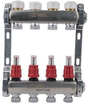 Manifold block 1, 4 outlets x 3/4 euro cone with control valves and VALTEC flow meters