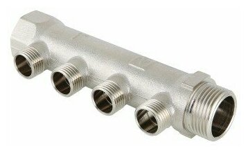 Type: manifold, manifold type: straight through, material: brass, connection type at the outlet: threaded