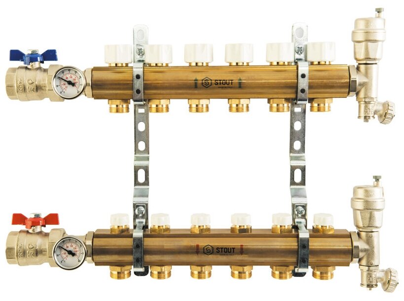 STOUT Distribution manifold 11 circuits made of brass without flowmeters