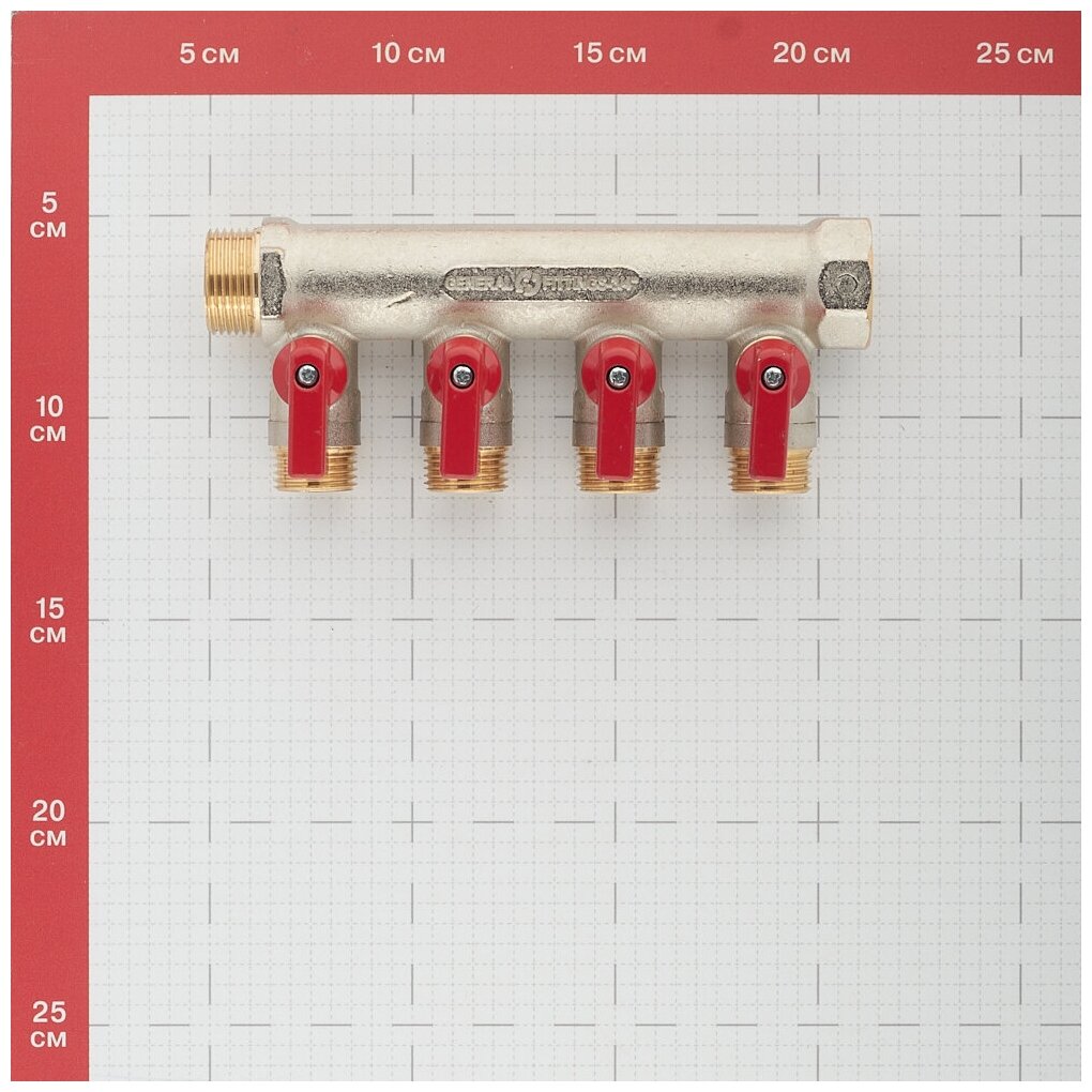 Stout Manifold with ball valves 3/4, 4 outlets 1/2 red handles