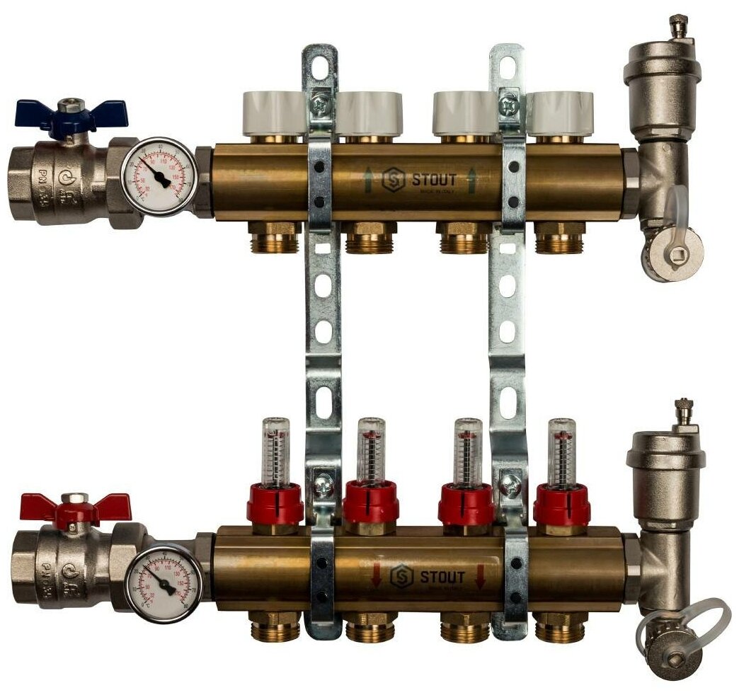 Stout Brass manifold with flowmeters 4 outlets
