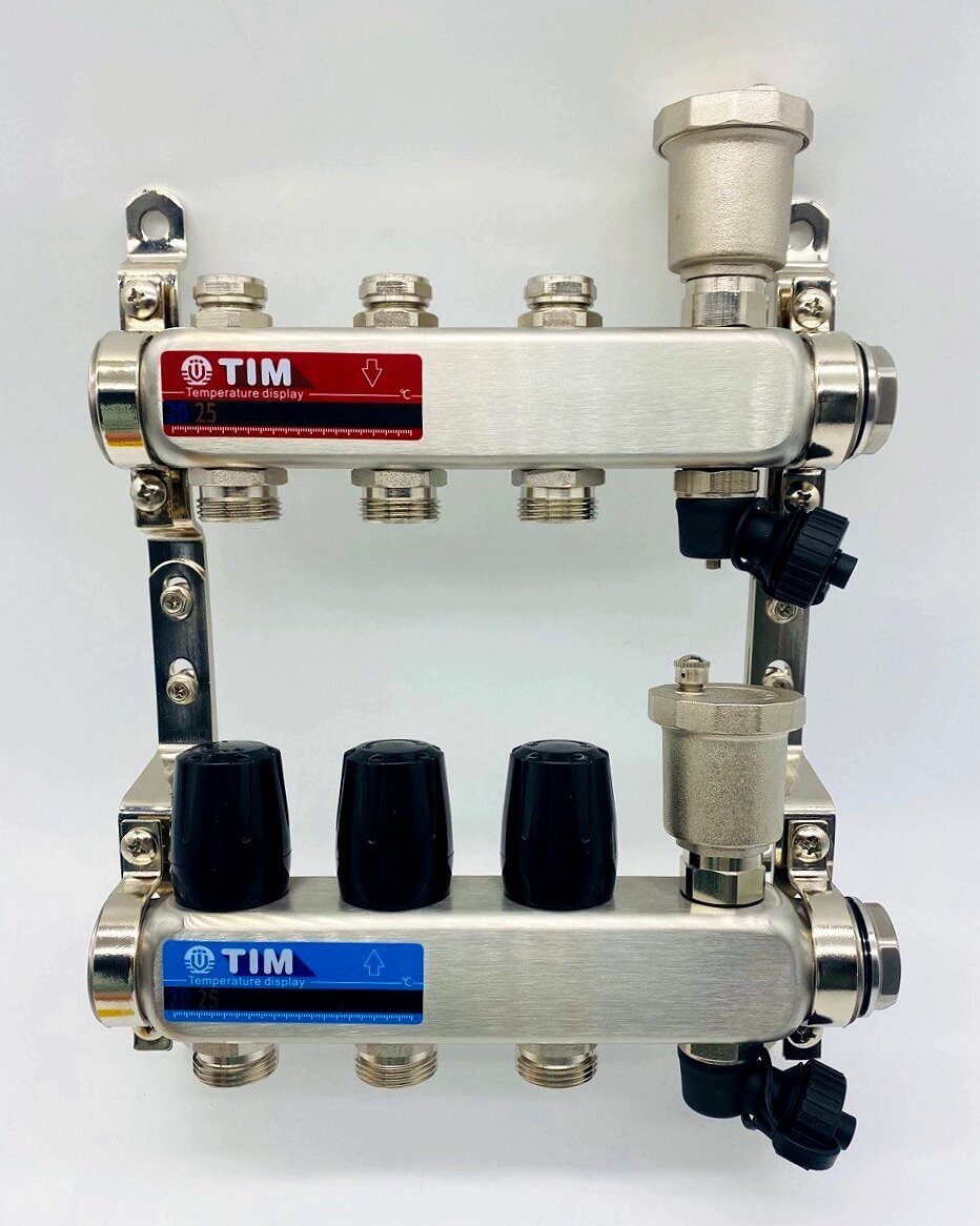 Manifold Tim KBS5003 1 BP-BP, 3 outlets 3/4, air vent, drain cock
