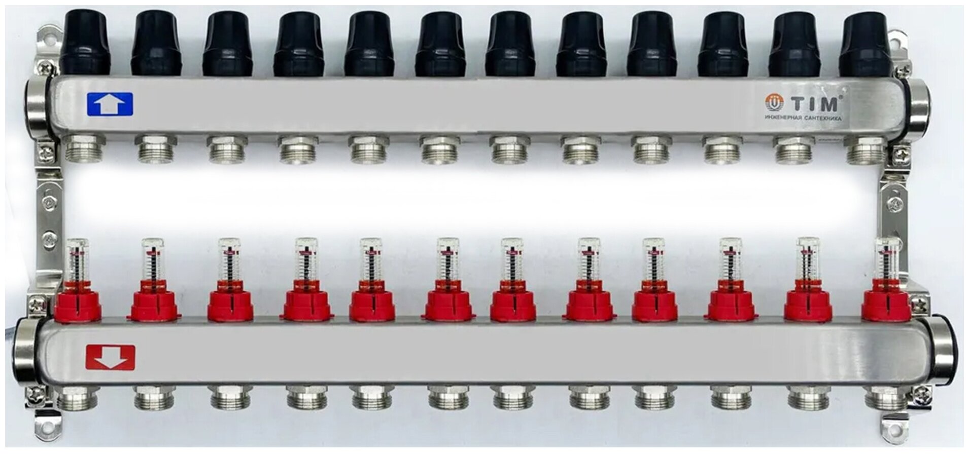 Manifold with stainless steel flow meters for underfloor heating 1, 2 outlets 3/4 TIM KDS5002