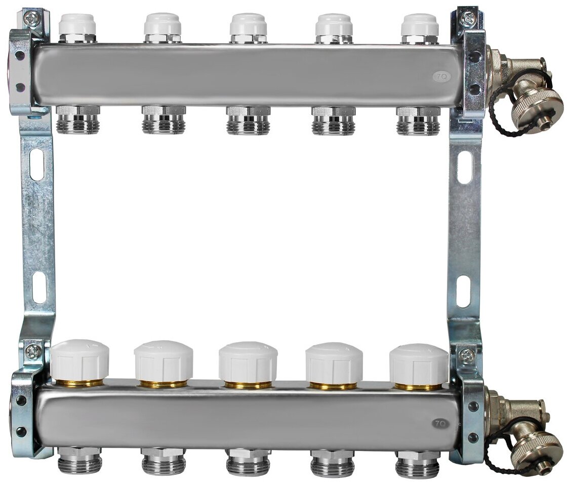 805R, 5 outputs. Stainless steel manifold with shut-off valves, thermostatic valves and drain valves.