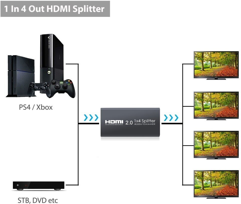 Interface type: HDMI, number of ports: 1 input, 4 outputs, HDR support