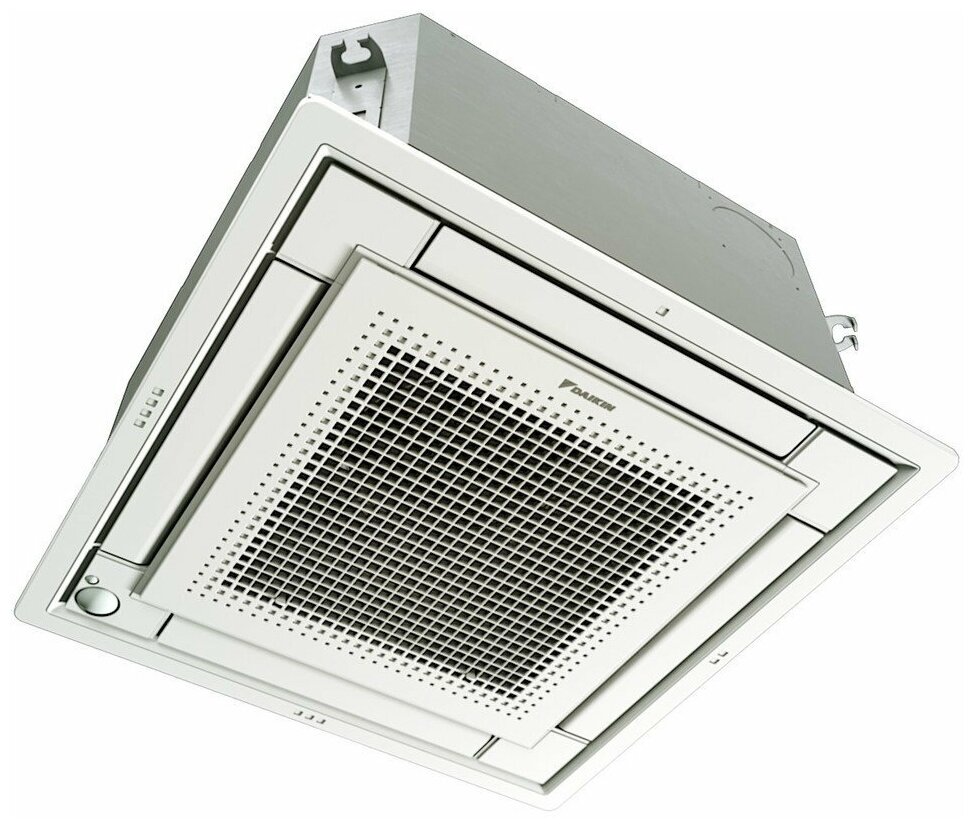 Type: indoor unit, indoor unit type: cassette, room area: 110 m², inverter, additional modes: ventilation, night, features: decorative panel included, remote control, on/off timer