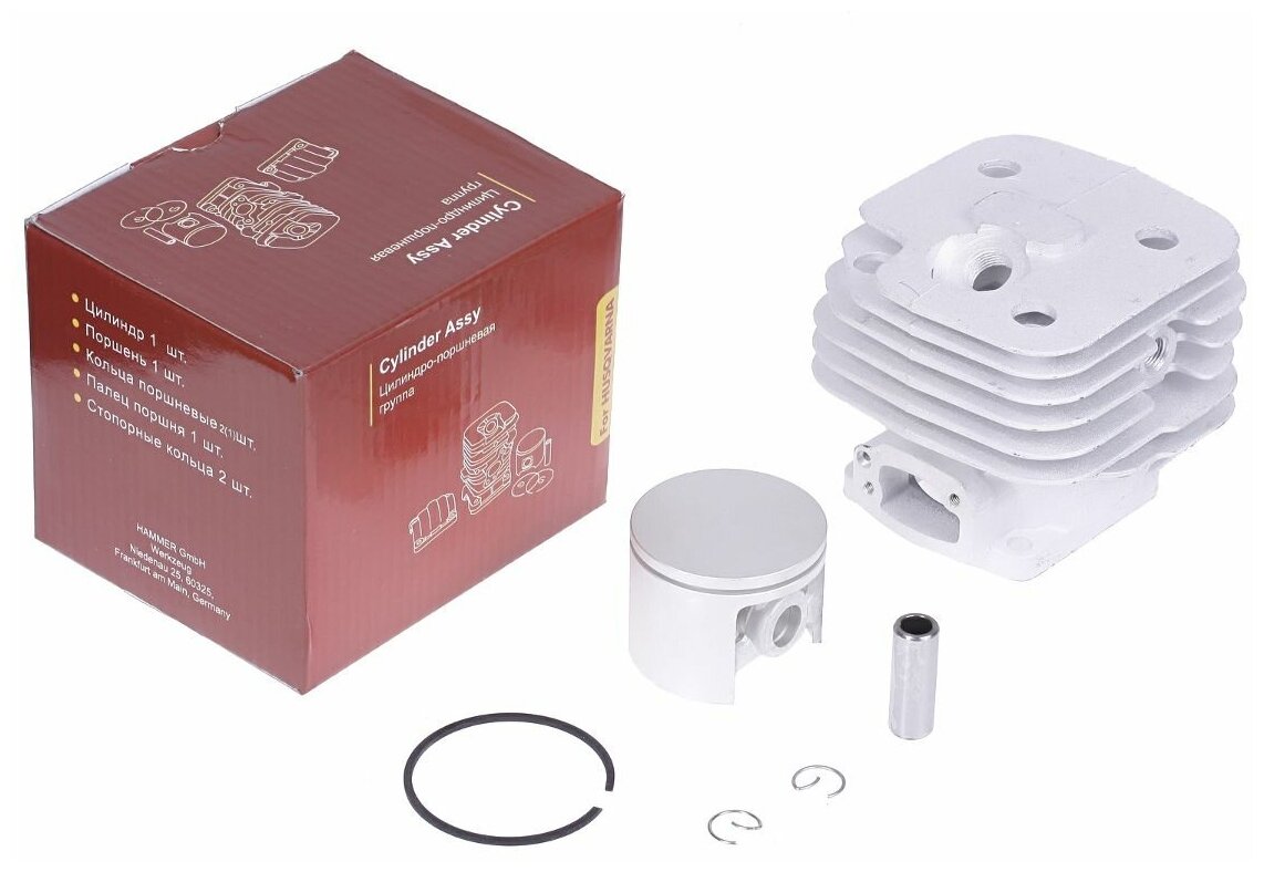The kit includes: cylinder 1 pc., piston 1 pc., piston rings 1 pc., piston pin 1 pc., retaining rings 2 pcs.; compatible with Husqvarna 272 chainsaw