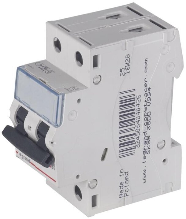 Type: circuit breaker, breaking capacity: 6 kA, rated voltage: 220/380 V, voltage type: AC, trip type: C, protection class: IP20, DIN rail mounting