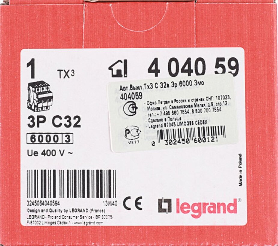 Automatic switch Legrand TX3 3P C 6kA 6 A
