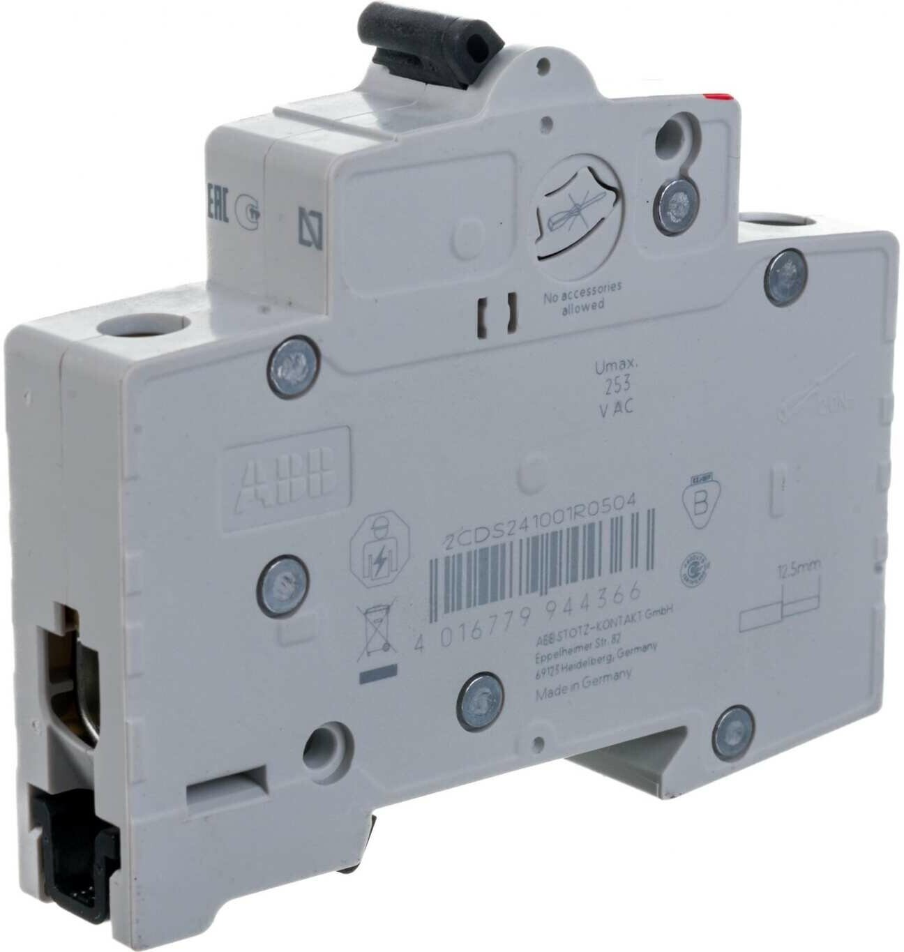 Type: circuit breaker, breaking capacity: 4.5 kA, rated voltage: 220/380 V, voltage type: AC, trip type: C, protection class: IP20, DIN rail mounting