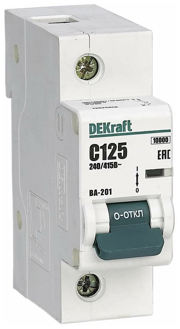 Type: circuit breaker, breaking capacity: 10 kA, rated voltage: 220 V, voltage type: AC, trip type: C, protection class: IP20, DIN rail mounting