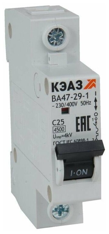 Type: circuit breaker, breaking capacity: 4.5 kA, rated voltage: 220 V, voltage type: AC, trip type: C, protection class: IP20, DIN rail mounting