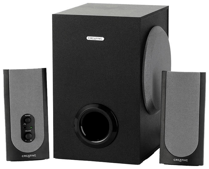 Bass reflex subwoofer with volume control. Volume control and power on/off switch with LED indicator on front panel.